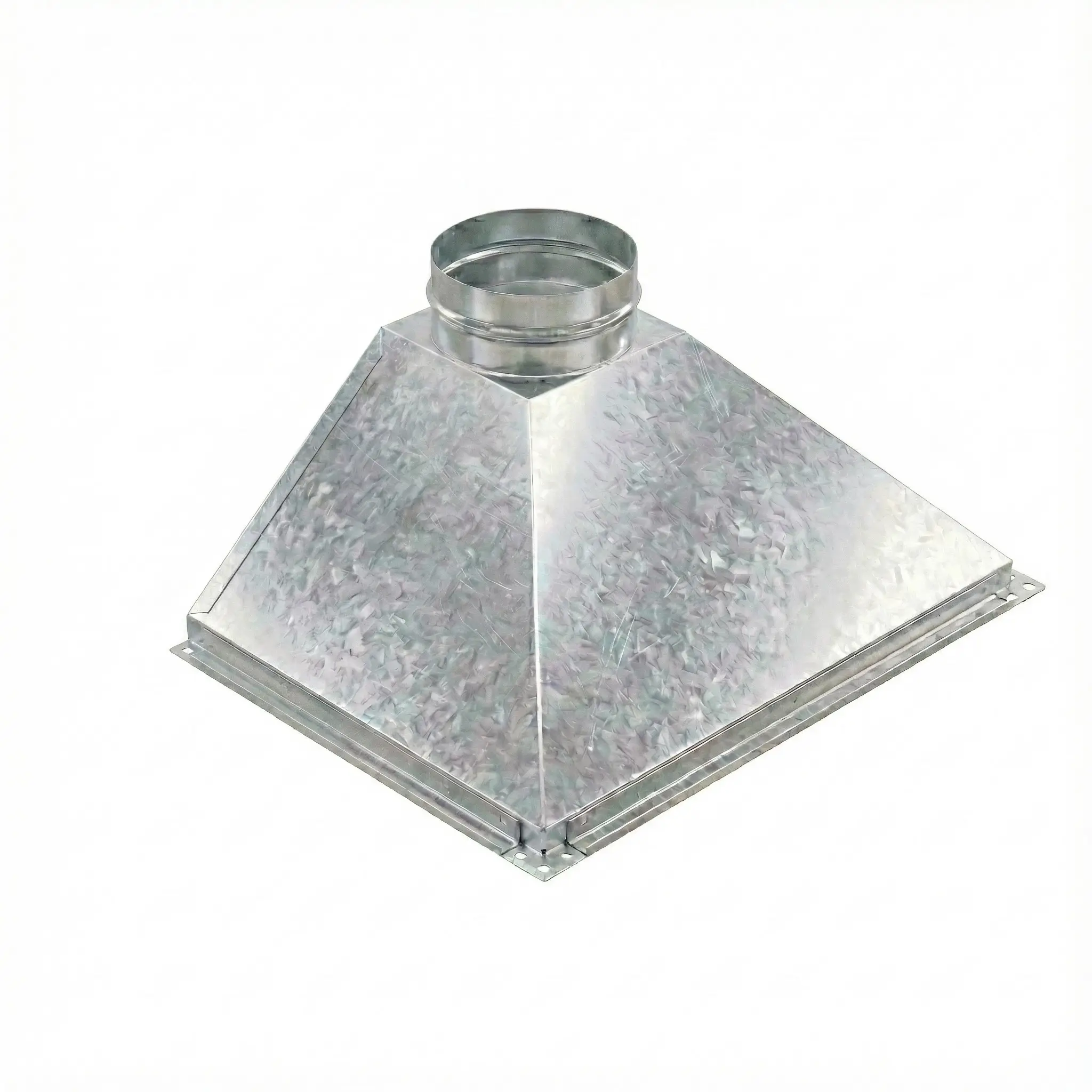 Вытяжной зонт изготавливается из металла. Конструктивно он представляет собой открытый снизу короб, подсоединенный к вытяжному воздуховоду. Такие зонты могут работать и при естественной, и при принудительной вентиляции.